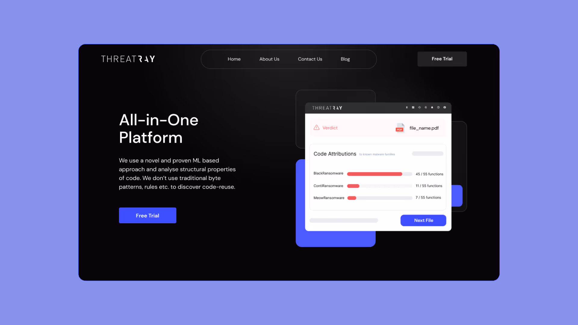 Für Threatray, ein führendes Cybersecurity-Unternehmen, durften wir eine moderne, leistungsstarke Website gestalten. Threatray bietet fortschrittliche Lösungen zur Bedrohungserkennung und Analyse und bedient eine vielfältige Kunden wie das CERN in Genf.